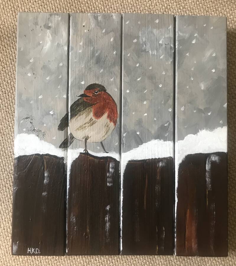 Roodborstje, 40 x 40 cm, op houten balkjes