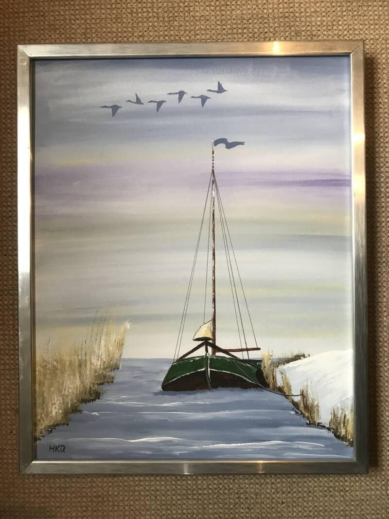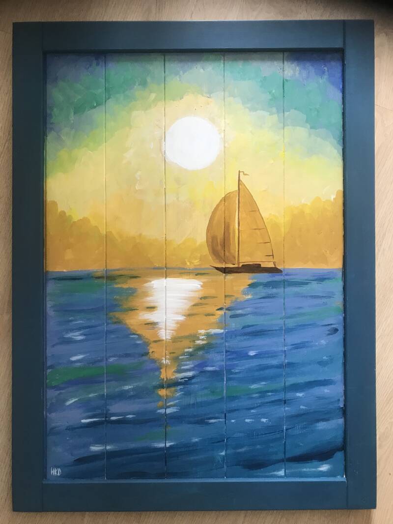 varen op zee, 30 x 24, met lijst op kleur gemaakt, 35 x 29