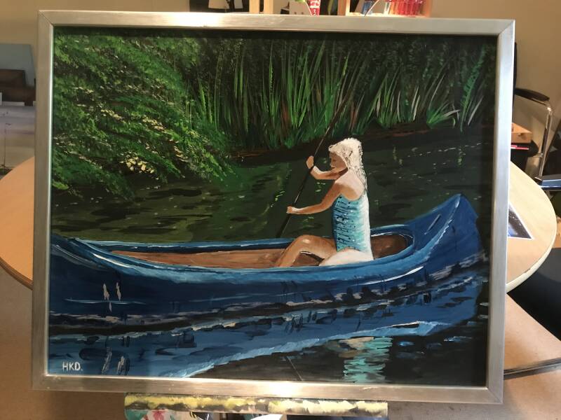 aan de waterkant, 40 x 50 , met lijst op kleur gemaakt, 47 x 57